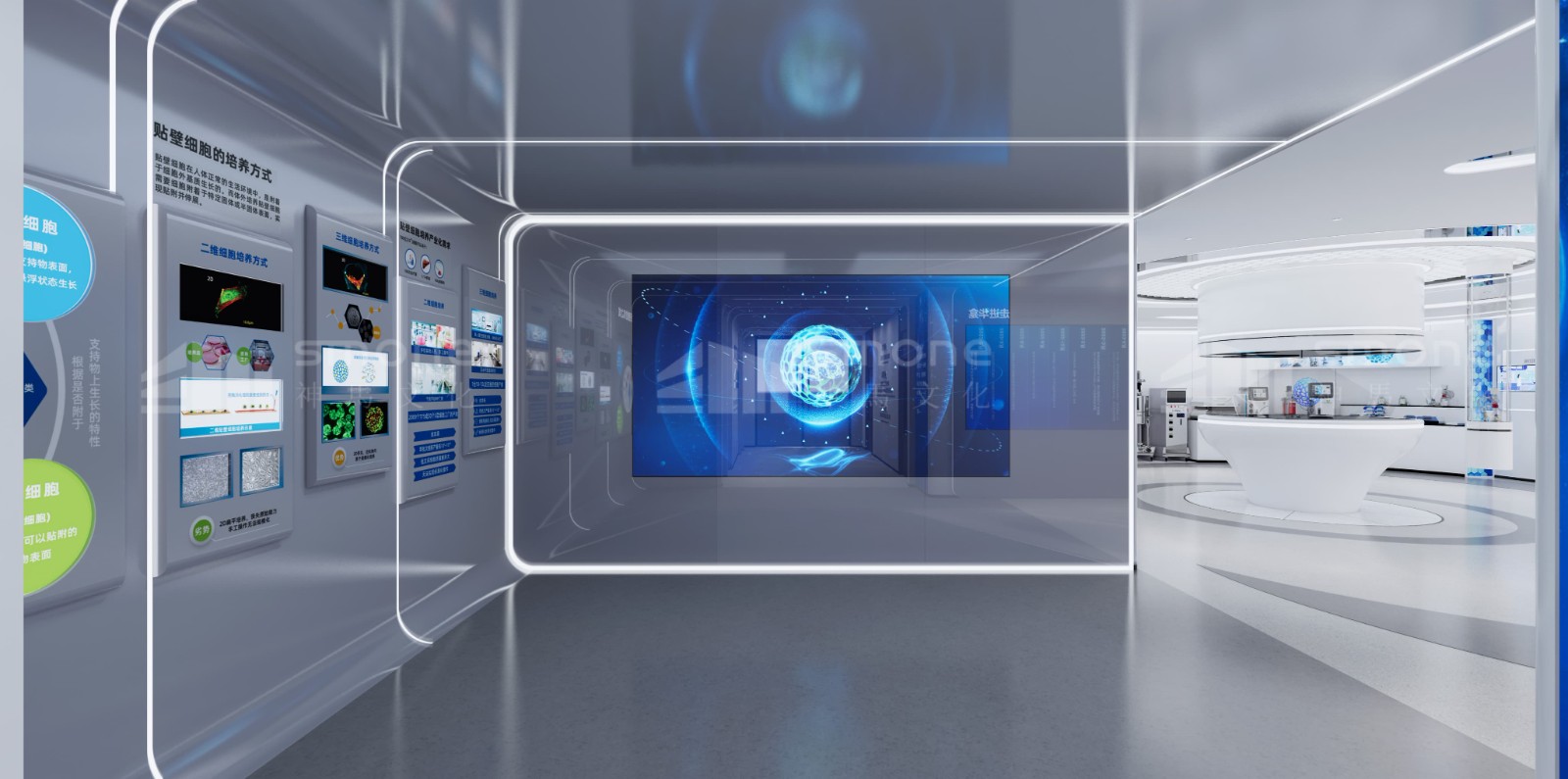 項(xiàng)目介紹 : 華龕生物作為清華領(lǐng)銜的專精特新 “小巨人” 企業(yè),神馬文化為華龕生物打造了一座生物科技展廳,展廳位于北京市,實(shí)現(xiàn) “技術(shù)權(quán)威傳遞 + 品牌價(jià)值塑造” 雙重目標(biāo),向科研機(jī)構(gòu)、投資商等受眾彰顯其 3D 細(xì)胞智造核心實(shí)力。我們以 “3D 細(xì)胞智造?構(gòu)筑生命未來(lái)” 為主題,借建筑工程隱喻細(xì)胞制造,打造兼具專業(yè)深度與符號(hào)記憶點(diǎn)的生物科技展廳。