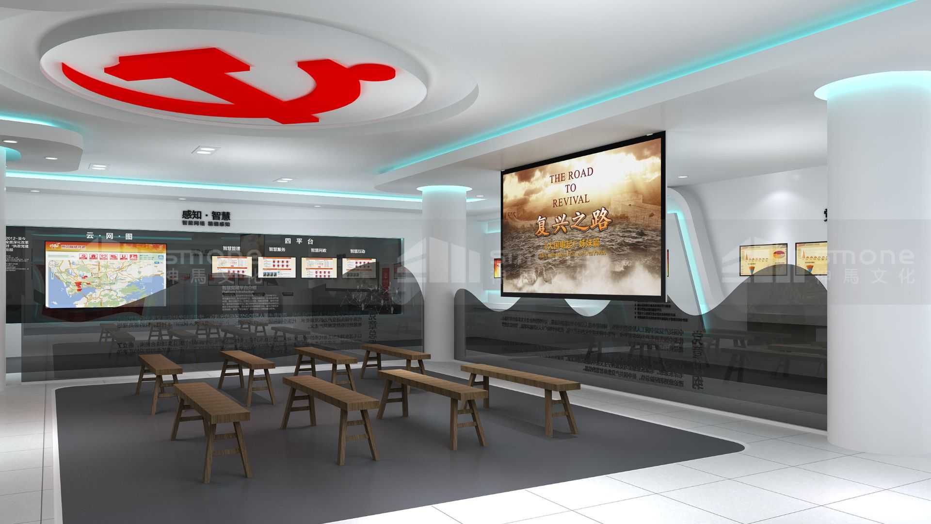 該項目通過革命元素與智能科技元素相結(jié)合,打造集革命精神與地區(qū)發(fā)展二元一體的特色文化展廳。