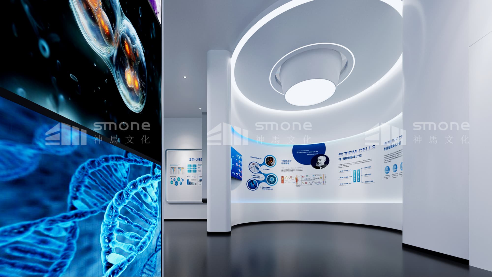 項(xiàng)目介紹 : 康世倫再生醫(yī)學(xué)科普展廳位于北京市,項(xiàng)目布展面積400平方。隨著再生醫(yī)學(xué)成為破解重癥治療與健康衰老難題的關(guān)鍵領(lǐng)域,康世倫再生醫(yī)學(xué)亟需一個(gè)既能彰顯技術(shù)硬實(shí)力,又能傳遞 “修復(fù)生命、守護(hù)健康” 品牌溫度的展示空間??凳纻愒偕t(yī)學(xué)科普展廳以 “再生醫(yī)學(xué)的臨床敘事” 為核心,通過(guò)空間邏輯與技術(shù)呈現(xiàn)的深度結(jié)合,打造了一座連接科研、臨床與公眾的專業(yè)生物干細(xì)胞科普展廳。