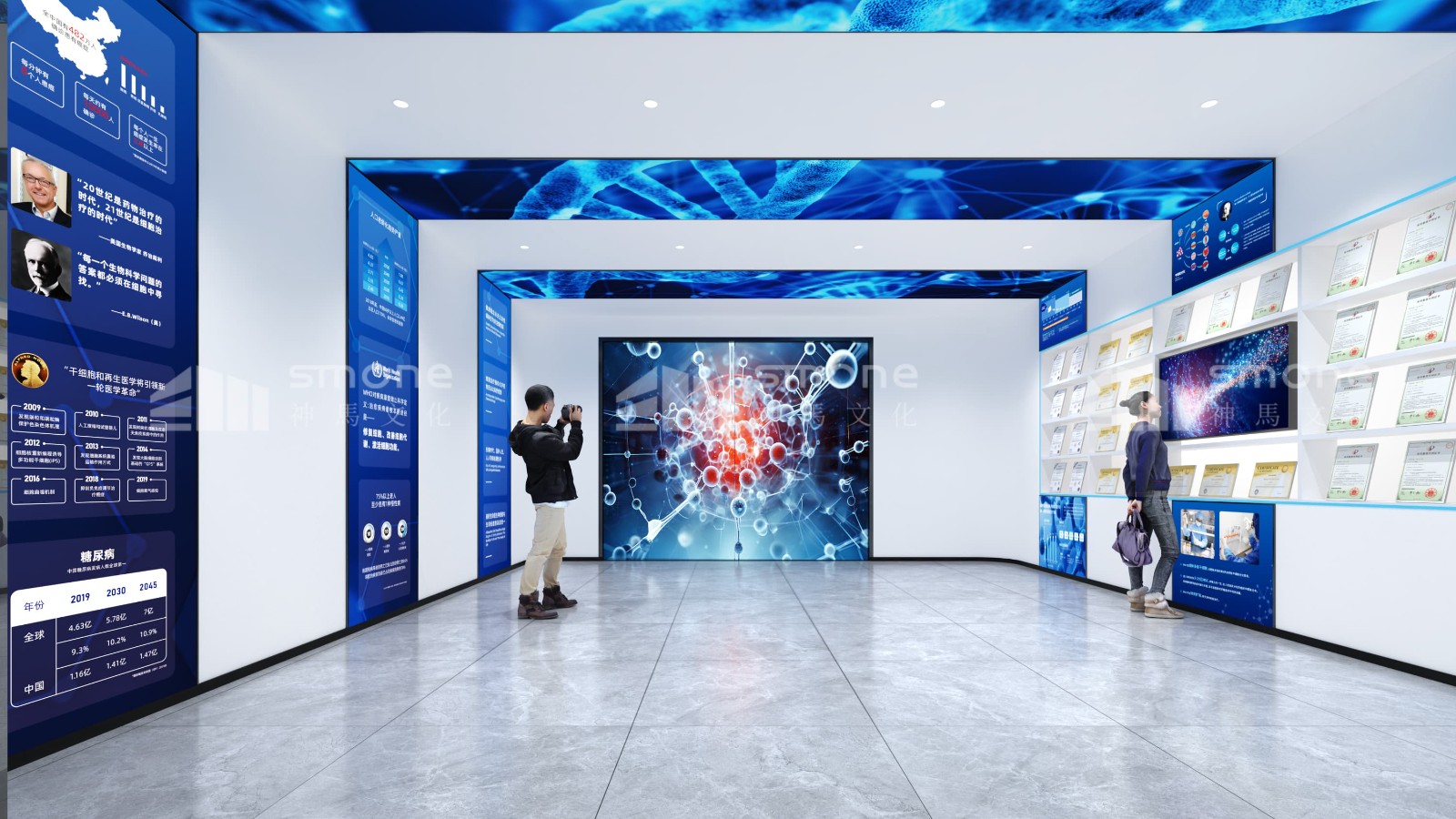 項目介紹 : 唯安細(xì)胞生物科技展廳位于河南省焦作市,項目布展面積500平方。在細(xì)胞生物科技成為前沿風(fēng)口的當(dāng)下,唯安細(xì)胞生物科技亟需一個兼具專業(yè)深度與體驗溫度的干細(xì)胞科普展廳,向客戶、合作伙伴及科研同行傳遞其在細(xì)胞存儲、再生醫(yī)學(xué)等領(lǐng)域的技術(shù)實力與品牌理念。唯安細(xì)胞科普展廳以 “解碼生命密碼,共筑健康未來” 為核心,通過空間設(shè)計與科技手段的深度融合,打造了一座可沉浸、可互動、可共鳴的生物干細(xì)胞科普展廳。