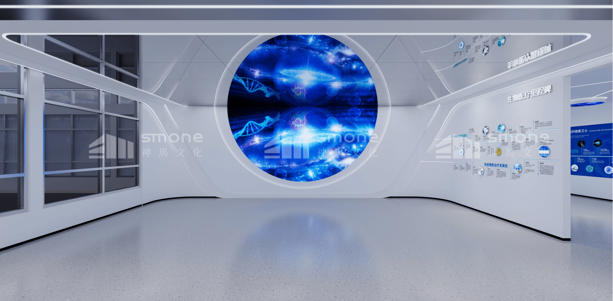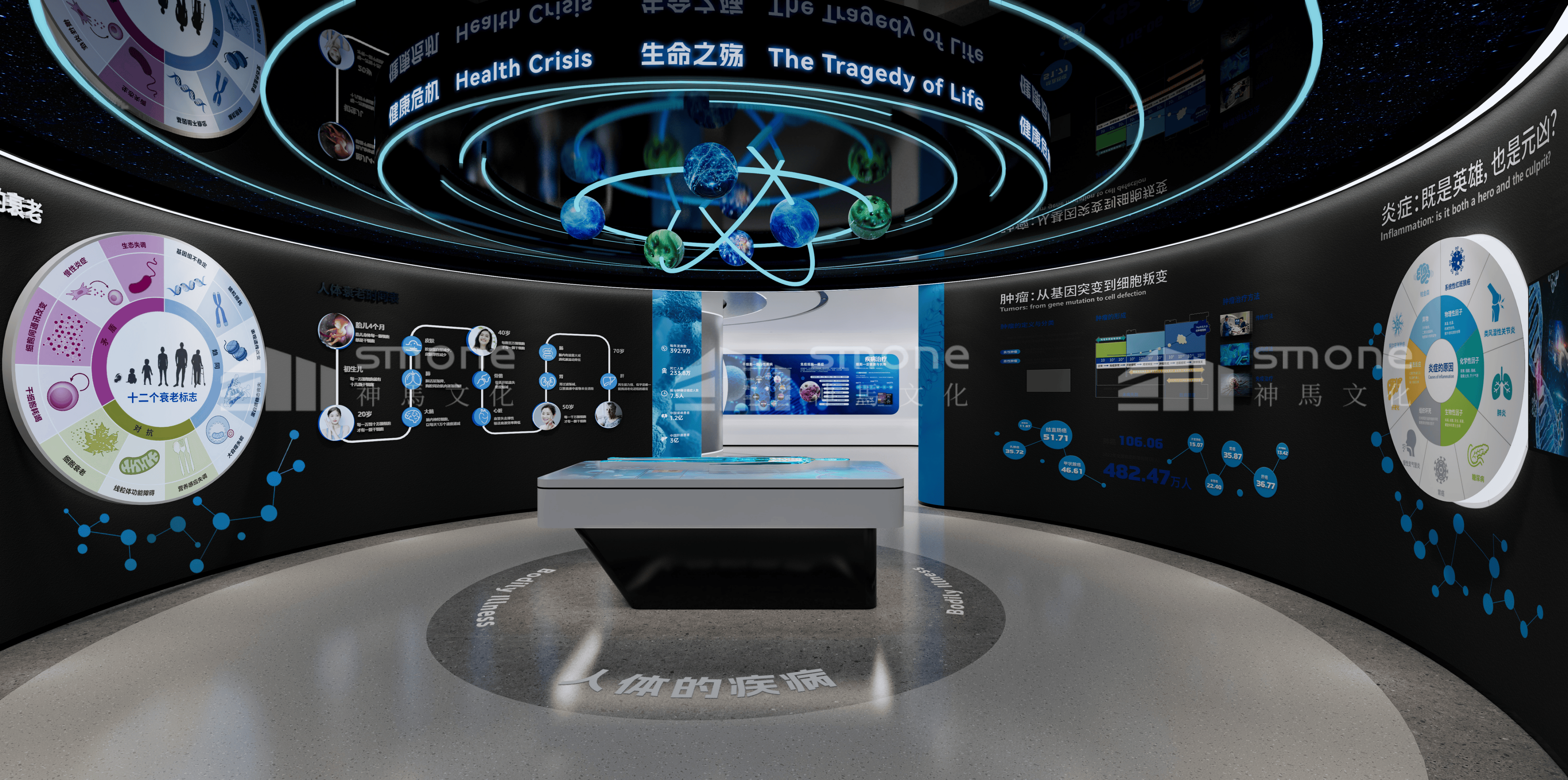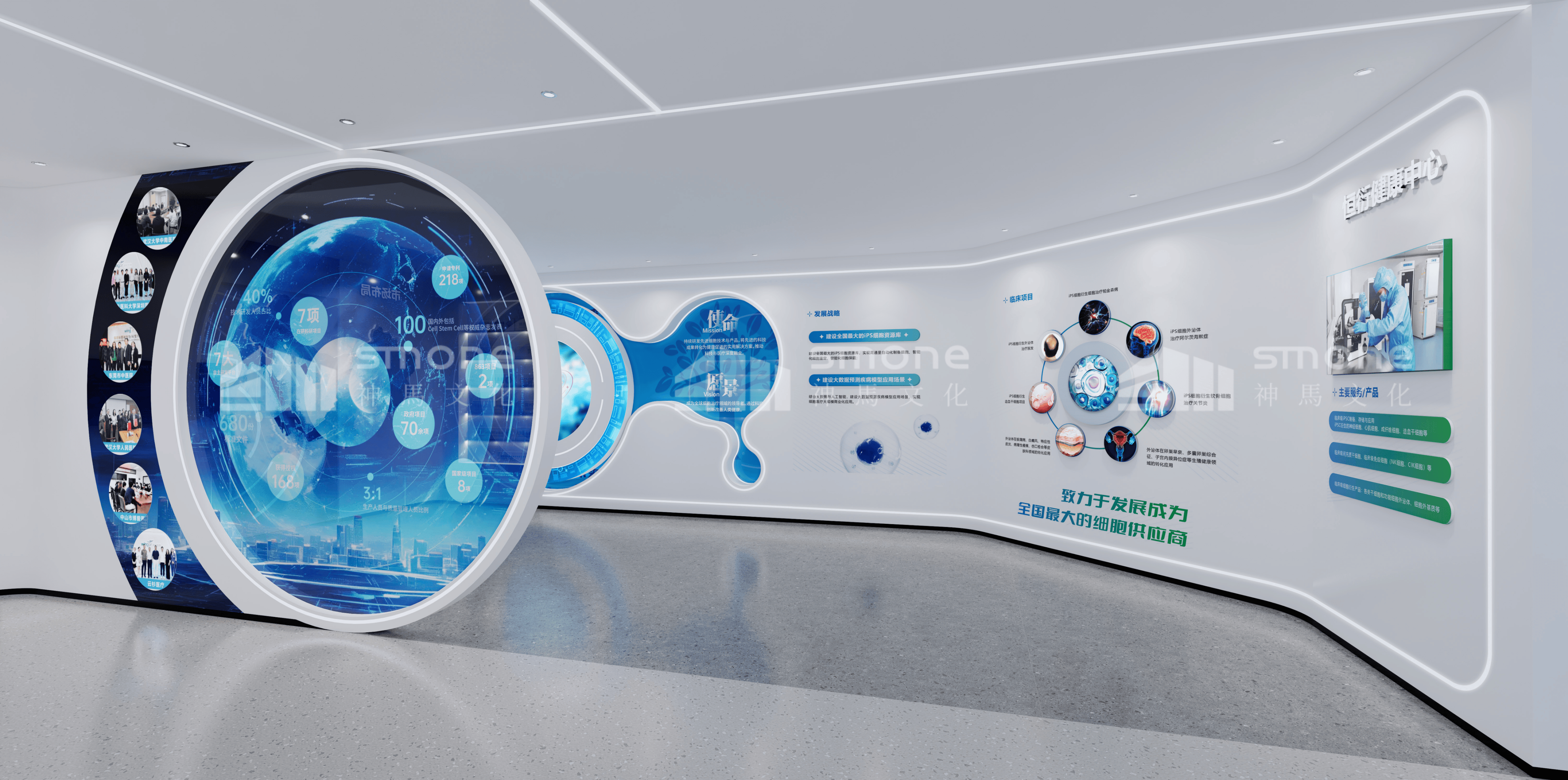 恒衍生物科技細(xì)胞展廳,位于湖南省郴州市,總面積約400平。神馬文化將空間劃分為從溯源生命到健康未來5大板塊。帶領(lǐng)觀眾從了解生命起源到感受細(xì)胞技術(shù)生物細(xì)胞技術(shù)未來前景。