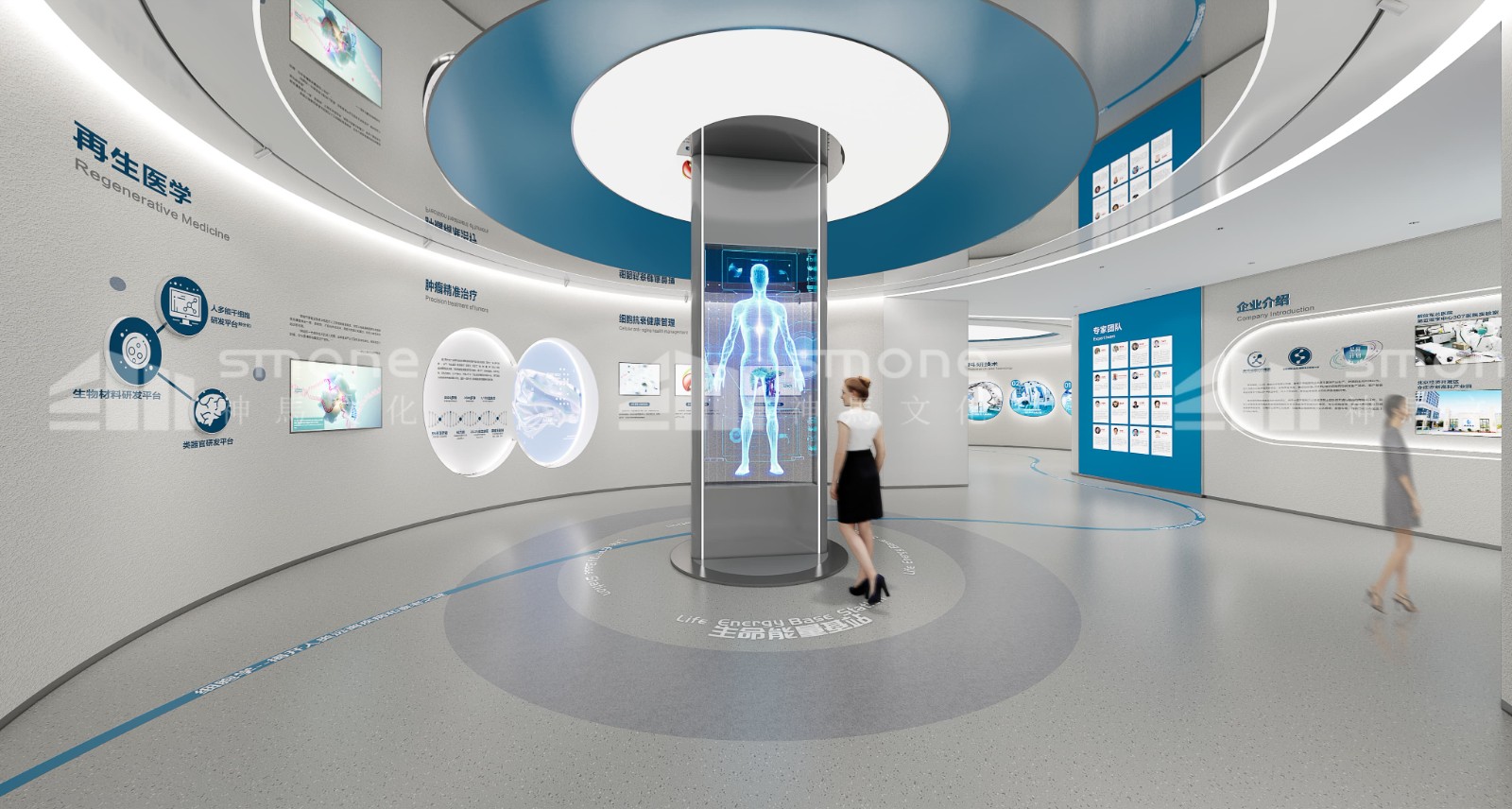 森普瑞斯細胞企業(yè)展廳位于北京市,總面積約500平,采用現(xiàn)代簡約科技風格。展廳劃分為四大板塊:開啟生命之旅、感知健康危機、探索細胞宇宙、創(chuàng)造健康藍圖,形成從健康認知到實踐的完整鏈條,成為展示細胞科技前沿成果的重要窗口。