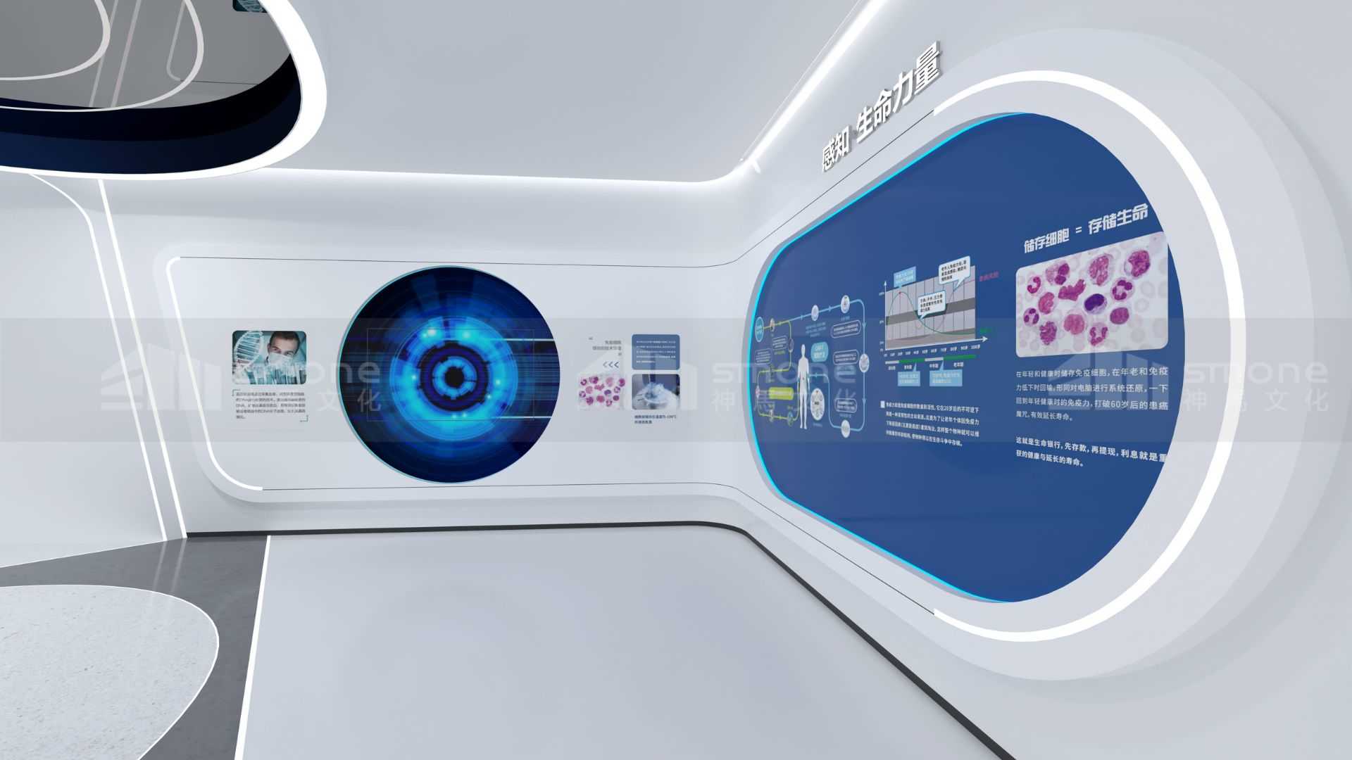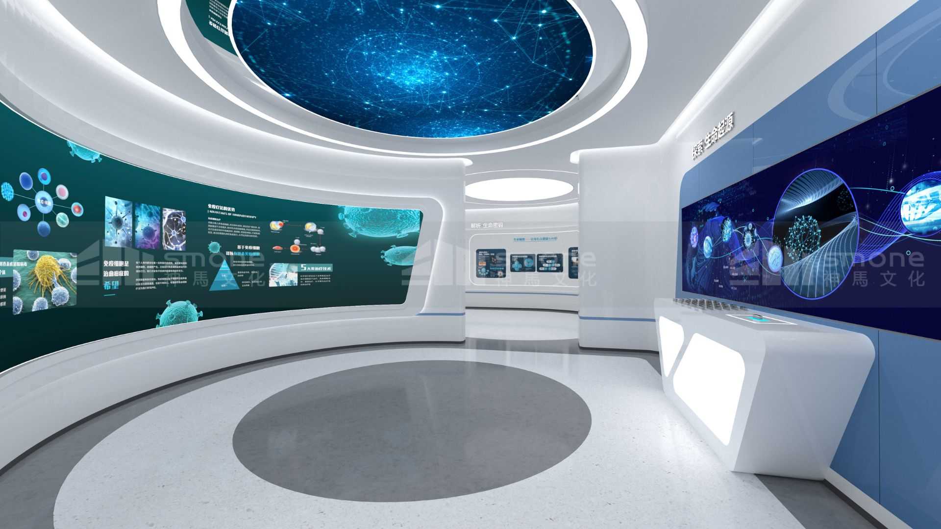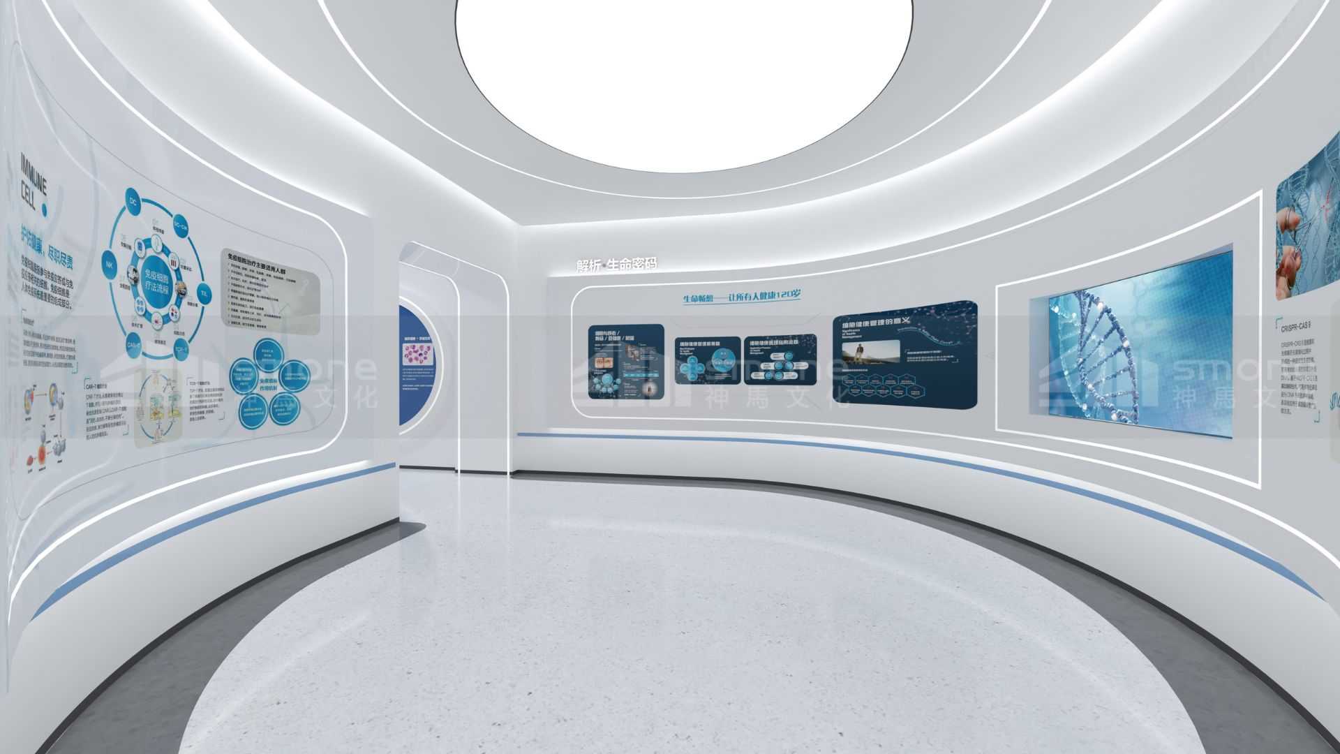 本項(xiàng)目從先康達(dá)的戰(zhàn)略發(fā)展計(jì)劃和使命愿景出發(fā),將智能科技與生物醫(yī)療相結(jié)合,以生命為線索,彰顯企業(yè)實(shí)力的同時(shí),打造一個(gè)能探索細(xì)胞神奇、展望生命未來的智能科技展廳。