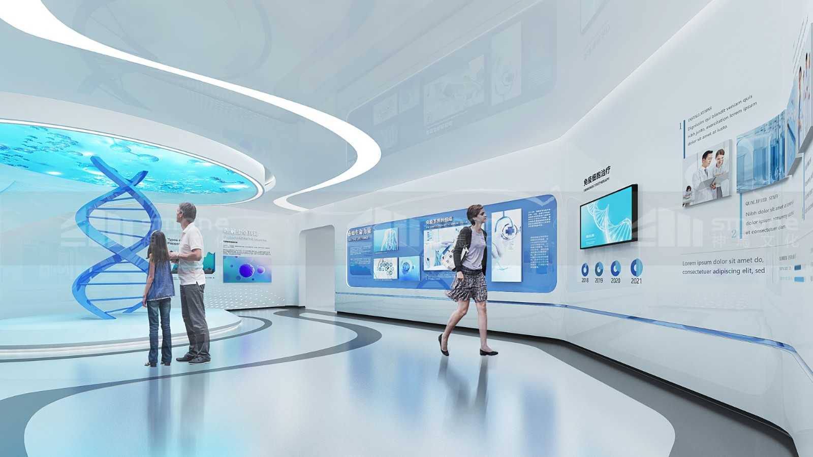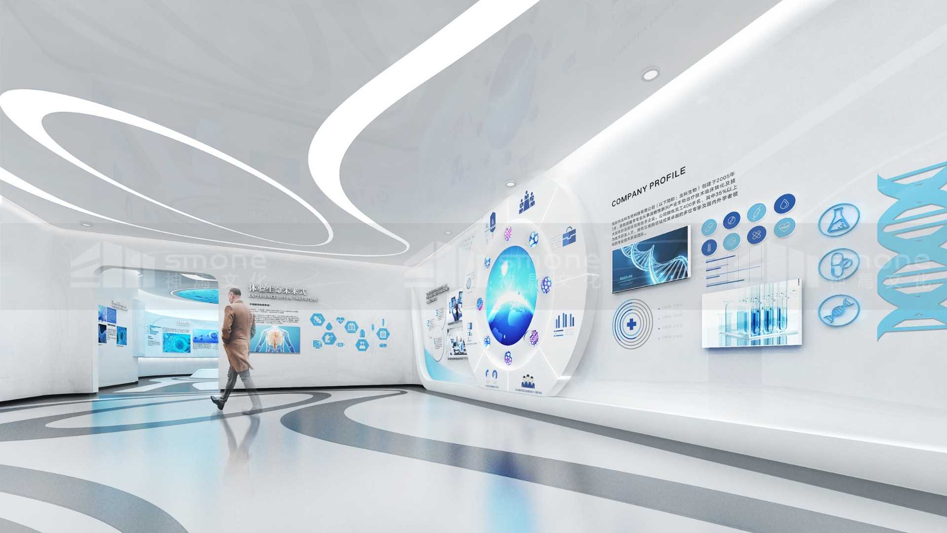 本項(xiàng)目從先康達(dá)的戰(zhàn)略發(fā)展計(jì)劃和使命愿景出發(fā),根據(jù)企業(yè)特性,將展示內(nèi)容進(jìn)行整理和歸納,設(shè)計(jì)出訪客的參觀動(dòng)線,讓訪客從解析生命、理解生命、感知感知、體驗(yàn)生命,再到展望未來的5個(gè)步驟全方位了解干細(xì)胞,了解東莞先康達(dá)。