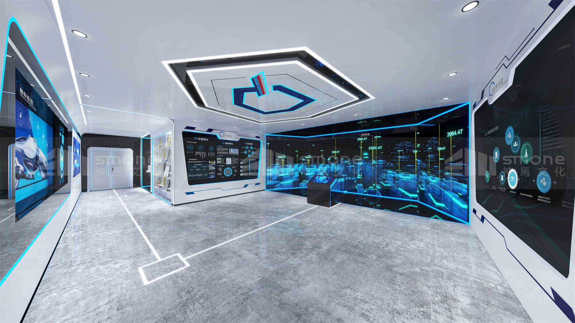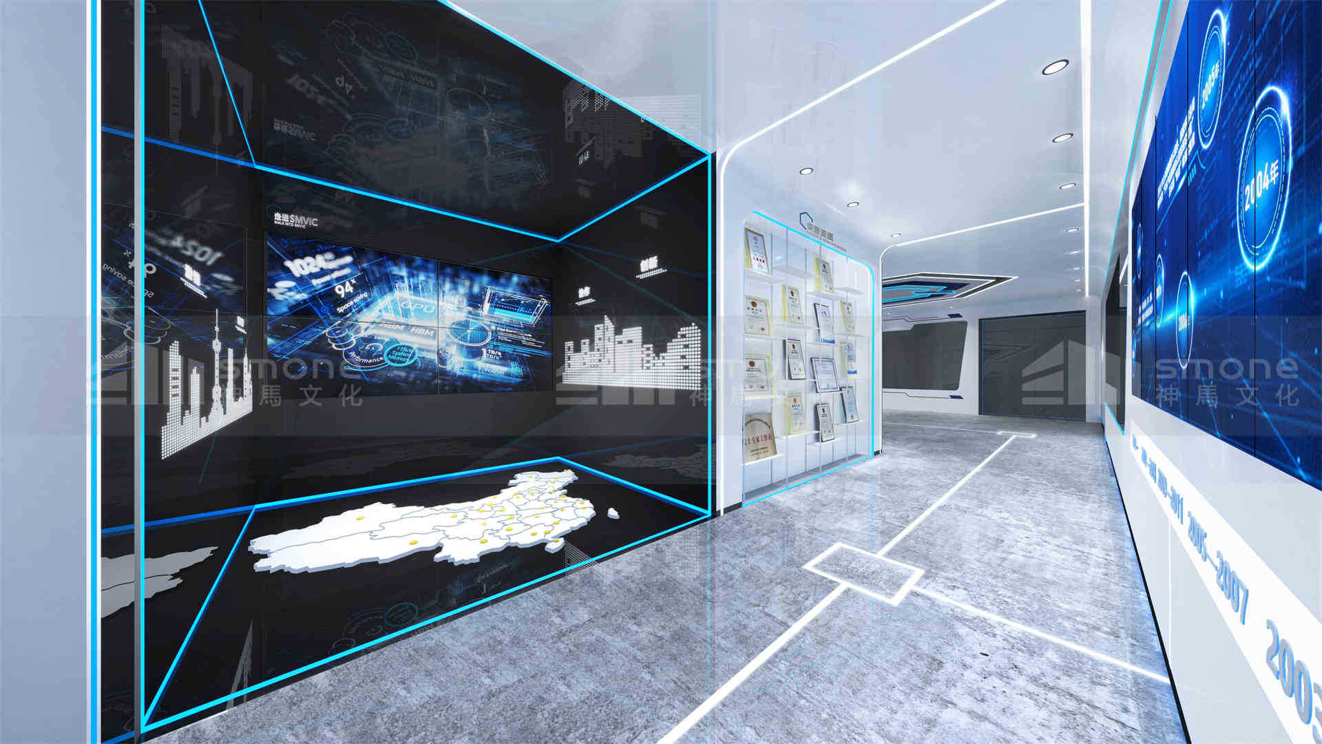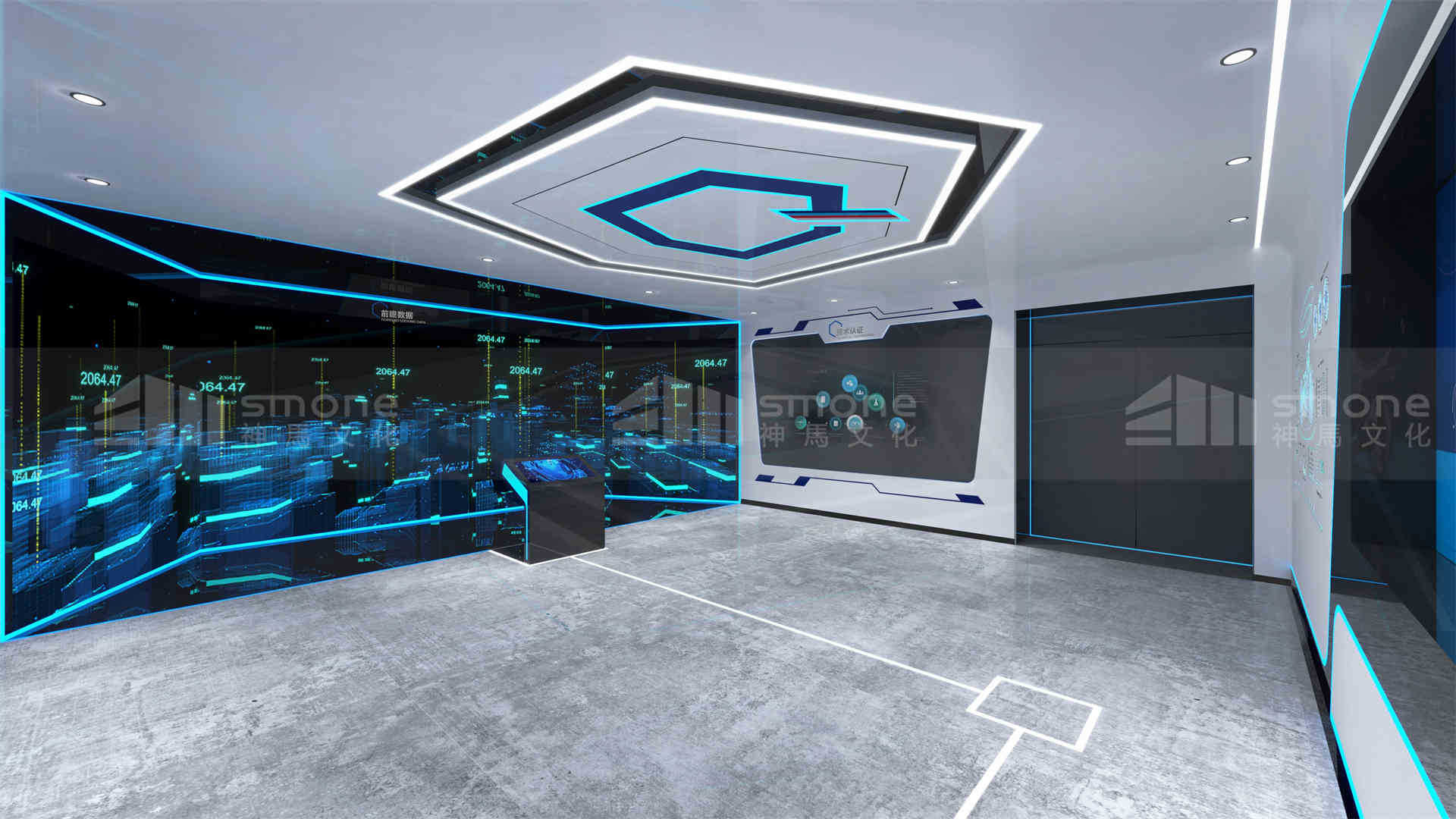 SMVIC智能體驗(yàn)廳將數(shù)字科技與機(jī)動(dòng)車(chē)產(chǎn)業(yè)相結(jié)合,將小展廳運(yùn)用軟性分隔的設(shè)計(jì)手法,最大化利用空間,打造出一個(gè)科技感和穿梭感的企業(yè)展廳。