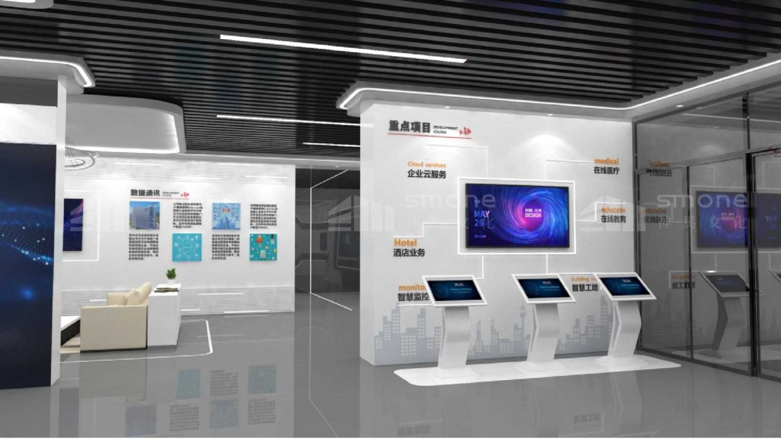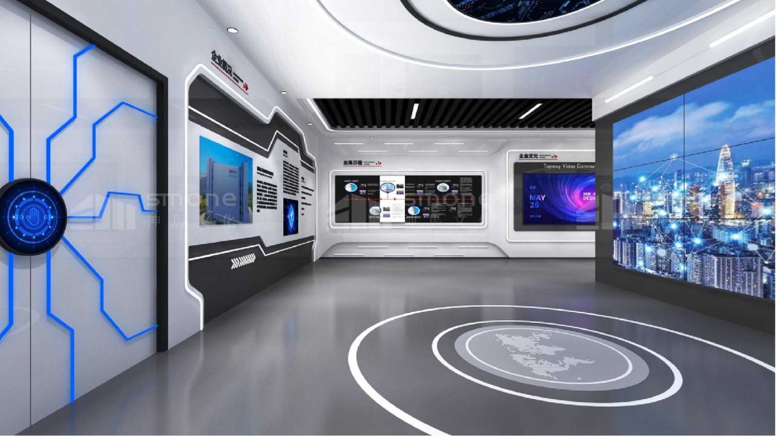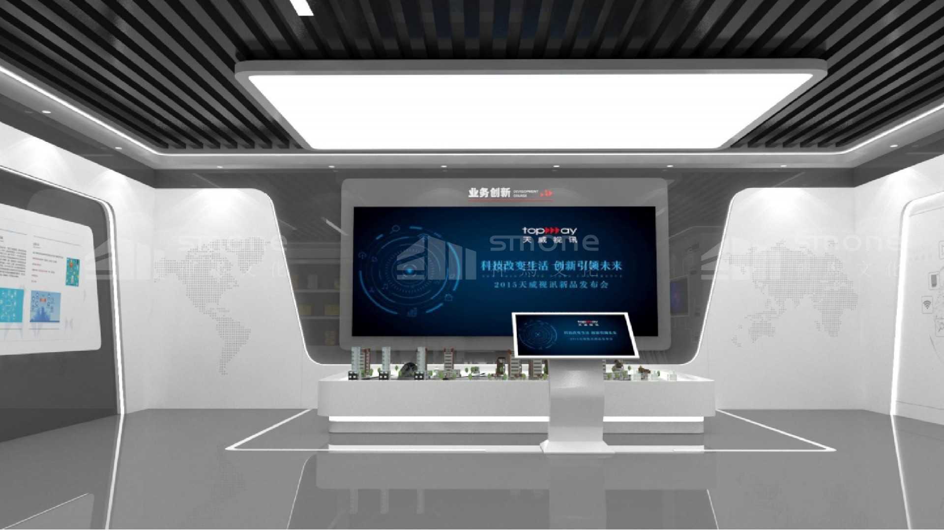 天威視訊企業(yè)展廳,位于深圳廣電文創(chuàng)中心2樓 , 建筑面積520平米 , 涵蓋展廳、 企業(yè)概況、 業(yè)務(wù)、 技術(shù)、 服務(wù)方面的創(chuàng)新及實力介紹等多種功能。
