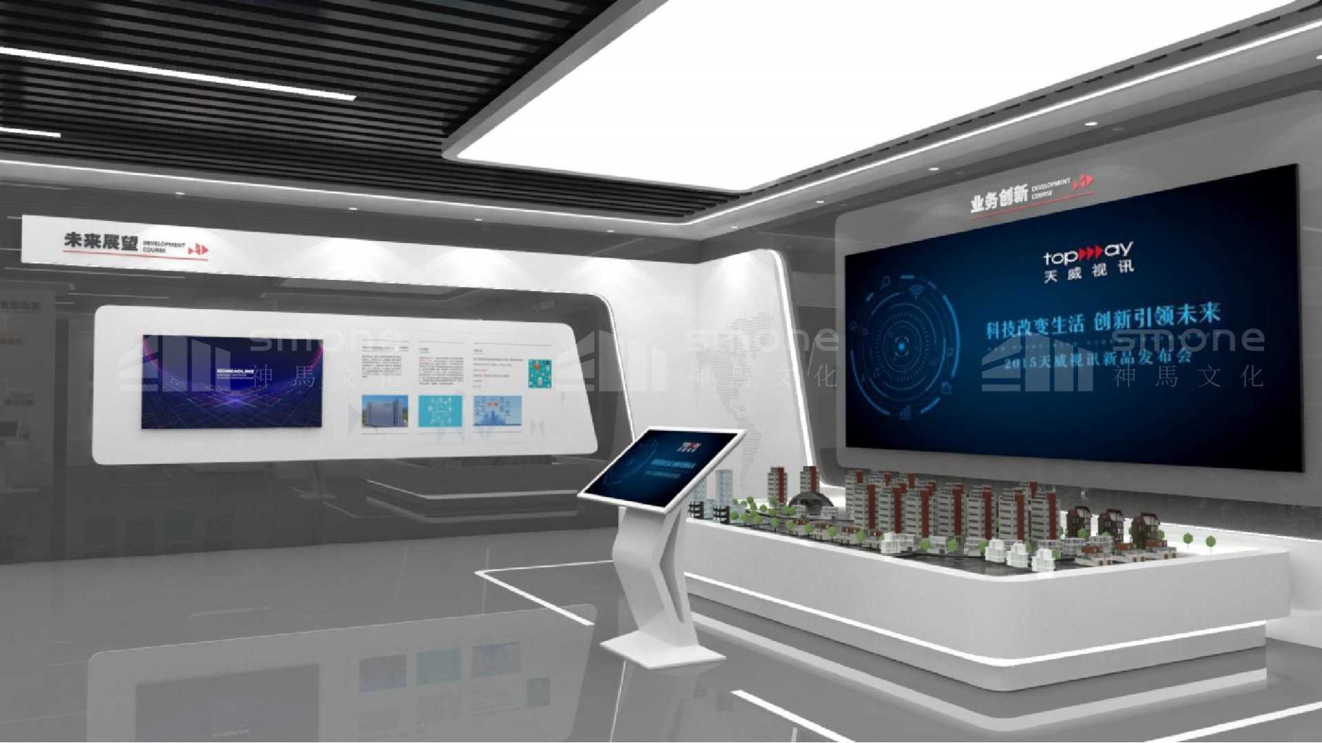 神馬文化以打造行業(yè)標(biāo)桿、創(chuàng)新特色、 國際理念的新概念企業(yè)展示館為目的,打破傳統(tǒng)展示形式 , 特別融入互動技術(shù),以內(nèi)容為核心,設(shè)置創(chuàng)意體驗展項,調(diào)動觀眾參與性,實現(xiàn)展館與受眾間的最大化互動。做到真正讓觀眾了解天威視訊文化、科創(chuàng)成果、讓領(lǐng)導(dǎo)團隊指導(dǎo)參觀的平臺窗口。