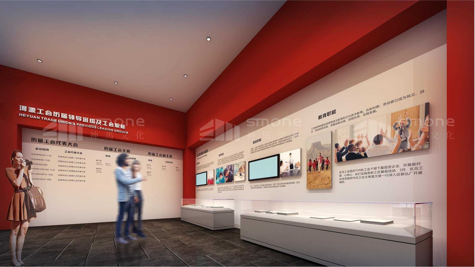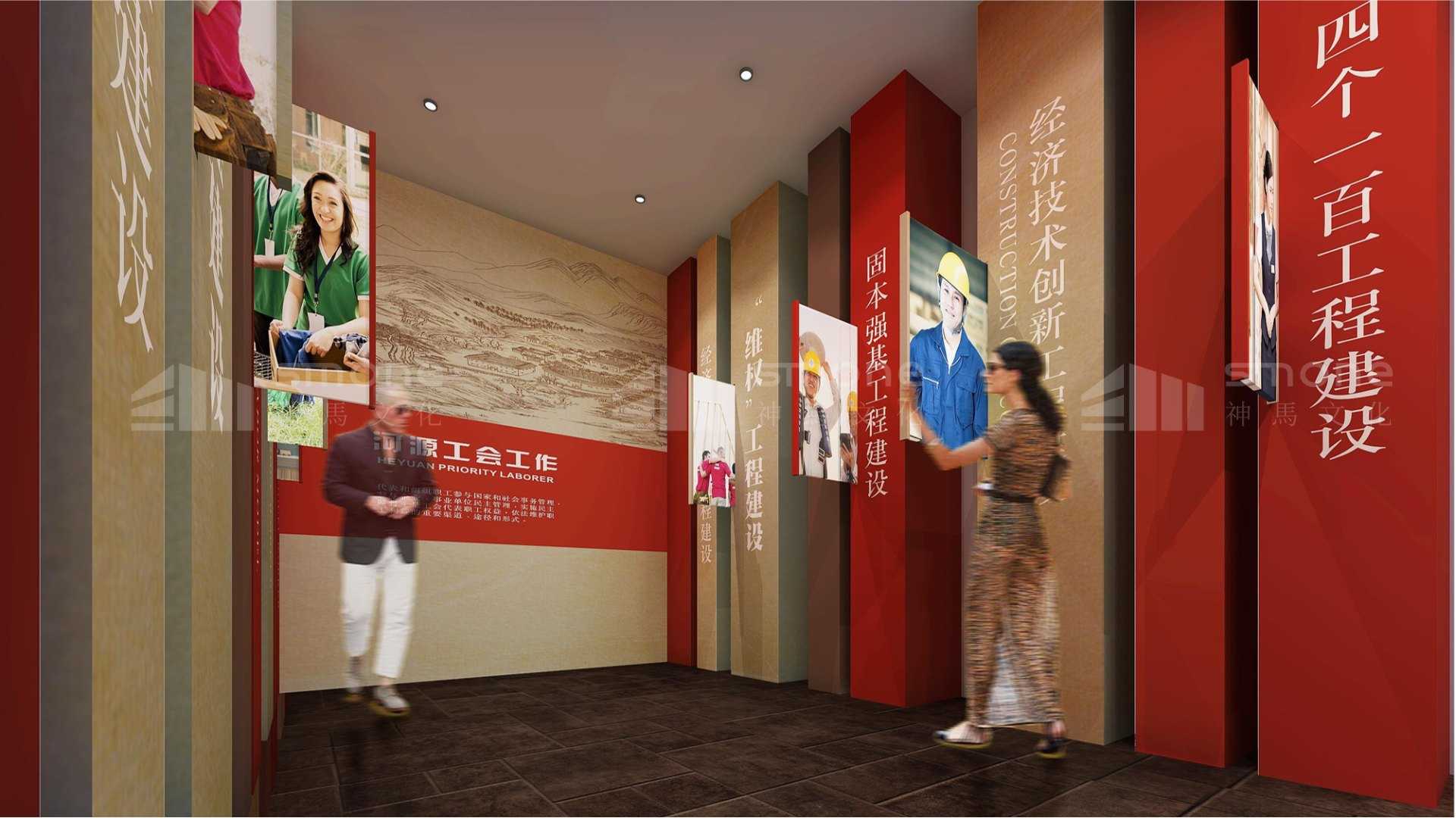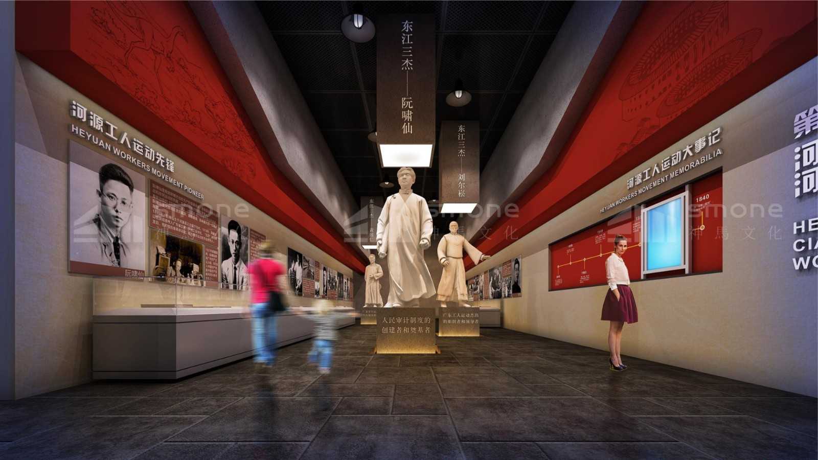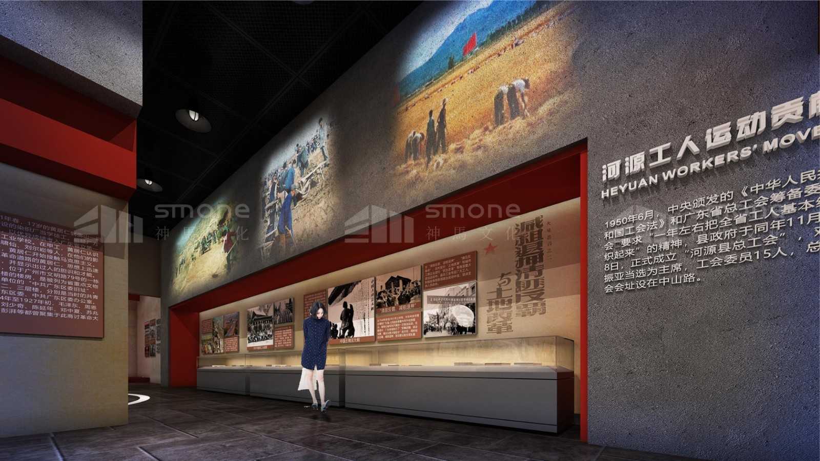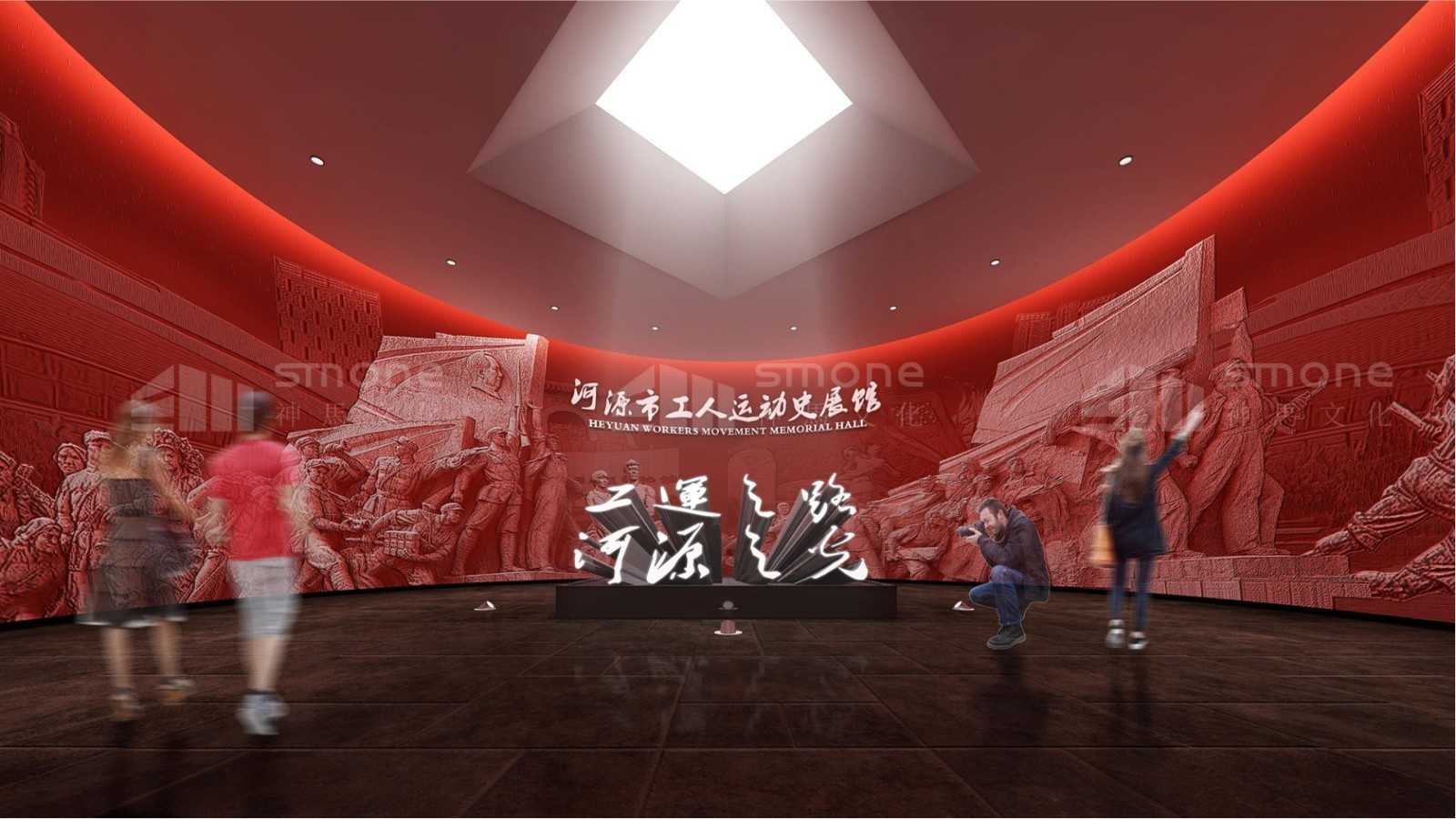 針對該項(xiàng)目面積小、事件少的特點(diǎn),打造小而精,小而特的差異化。將河源工運(yùn)任務(wù)等的特色最大化展示,結(jié)合多媒體變現(xiàn)手法,告別傳統(tǒng)展陳的紀(jì)念館,打造出具有特色的“新”展示空間。